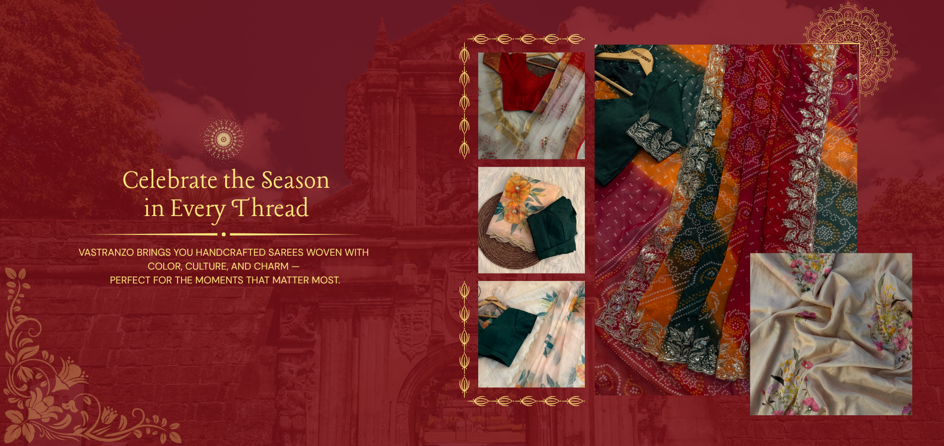 Throughout the fashion year, Vastranzo introduces new collections and completely original designs. Vastranzo's aesthetic sensibility and design aesthetics draw inspiration from a variety of sources, including the intricacies of intricate works, the modern world, the home-bound handloom traditions of India, and the beauty of nature and legacy in art, architecture, and culture.