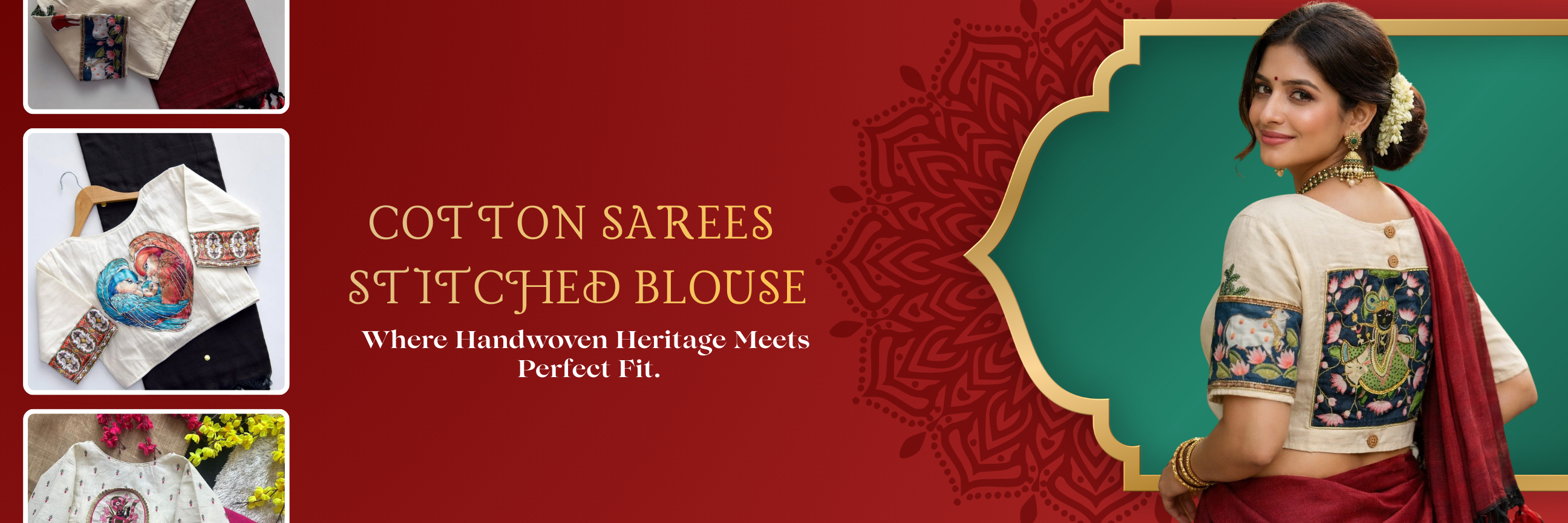 DB154 Cotton saree And Beautiful Heavy Cotton Apllic Blouse.